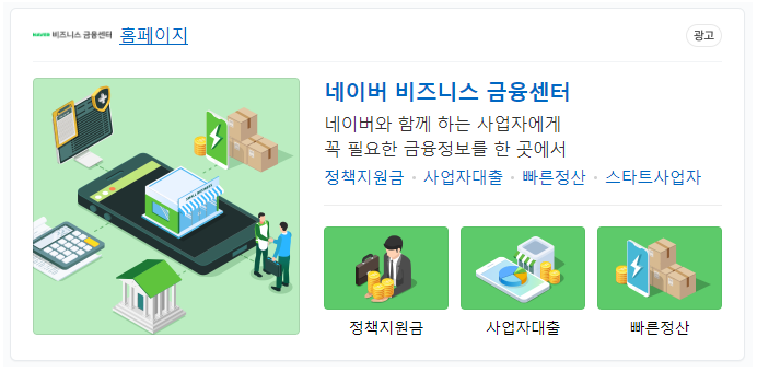 - 네이버 파트너 금융지원 하단 > '사업자대출' 선택